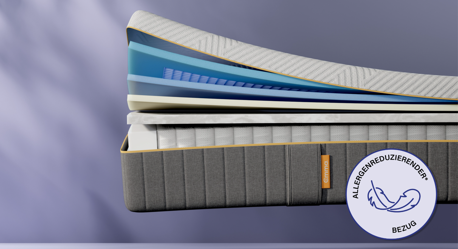 Der Premium-Bezug von Emma überzeugt mit dichterem, angenehm weichem Stoff. Er ist komplett abnehmbar und einfach zu reinigen – für eine dauerhaft gepflegte Matratze. Unser Purotex-behandelter Bezug hilft, Allergene² zu mindern und bietet zusätzlichen Schutz vor Milben- sowie Tierallergenen.